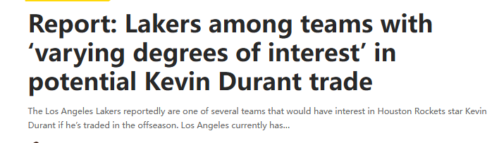 湖人有意引进杜兰特吗?