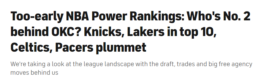 CBS更新休赛期实力榜:雷霆居首火箭第4 湖人第8开拓者第21